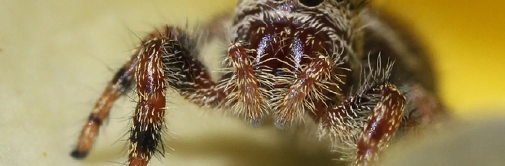 Today, it was not an insect but an arthropod that caught our attention: a jumping spider. We pointed the Canon MPE-65mm lens directly in its eyes. It just looked back at us, figuring we were no threat.