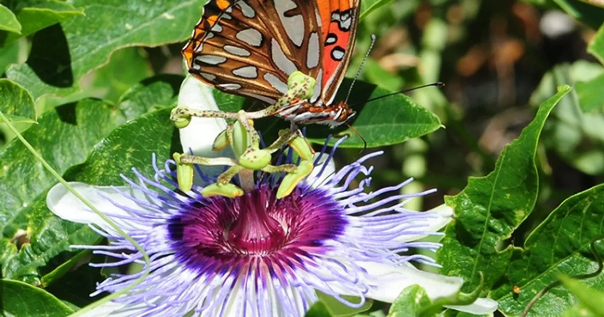 The butterfly lays its eggs only on passionflower vines (genus Passiflora)--lots of eggs--so expect the caterpillars to skeletonize the plant. It's a good idea to offer some nearby nectar for the adults, too. Their favorites include the butterfly bush, Mexican sunflower (Tithonia) and lantana.