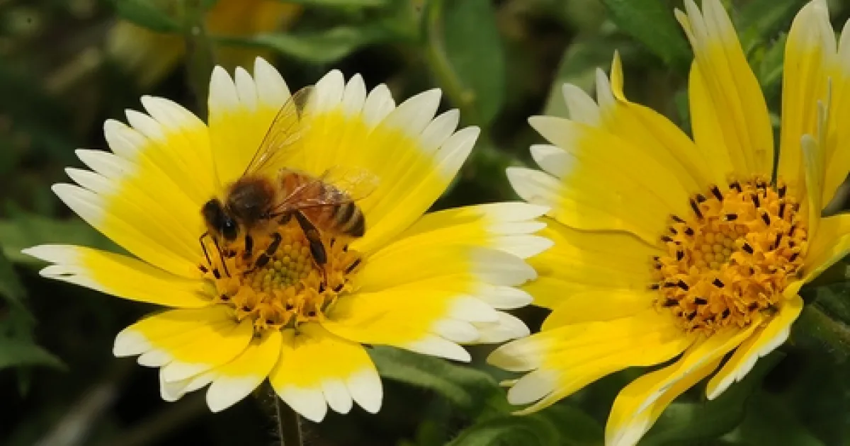 The Tidy Tips, a native California wildflower (Layia platyglossa, family Asteraceae) is a welcome addition to flower beds.