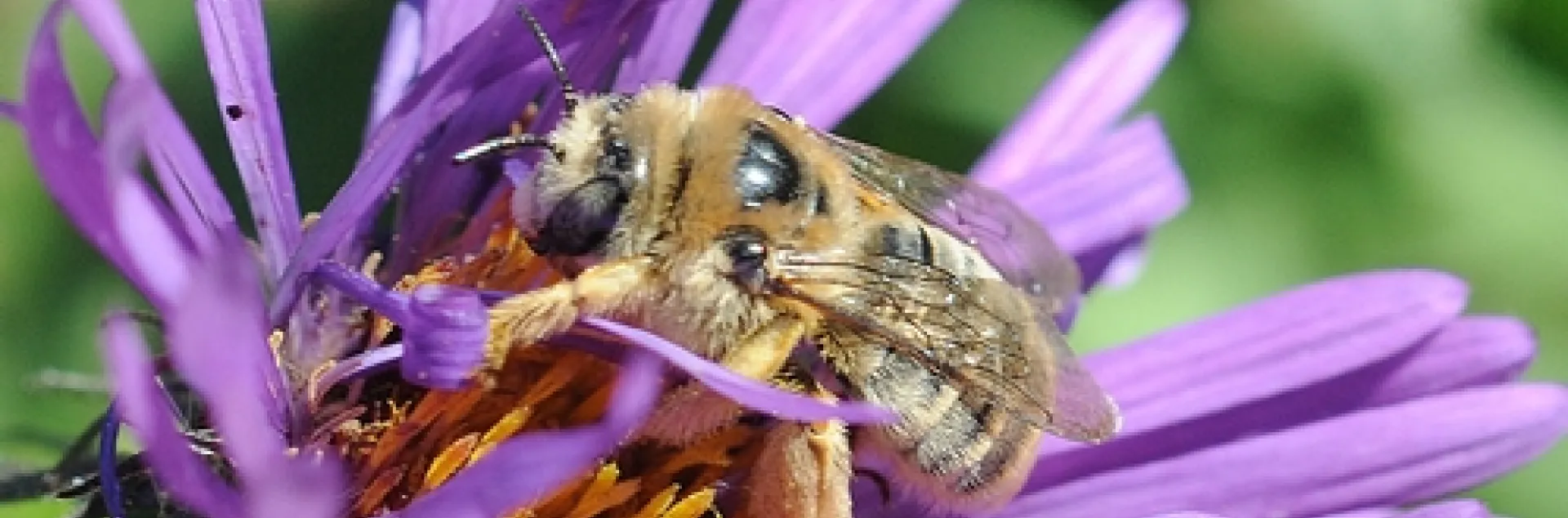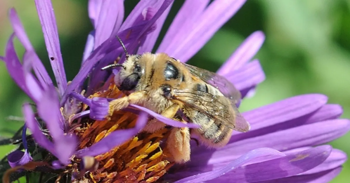 The sunflower bee (Diadasia enavata), family Apidae, is a specialist bee instead of a generalist. You'll see it on members of the sunflower family, such as the asters, daisies and sunflowers. Unlike honey bees,it doesn't go for the sage, lavender and catmint.