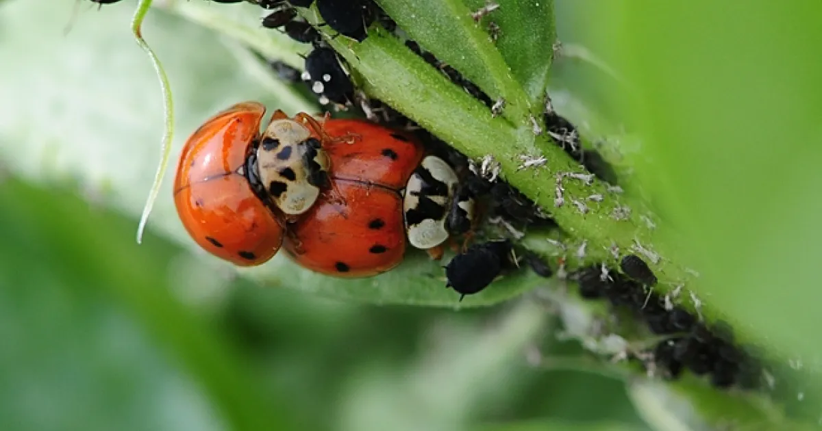 It's a sure sign of spring when aphids emerge, and ladybugs feast on them. One ladybug can reportedly eat 5000 aphids in its lifetime.