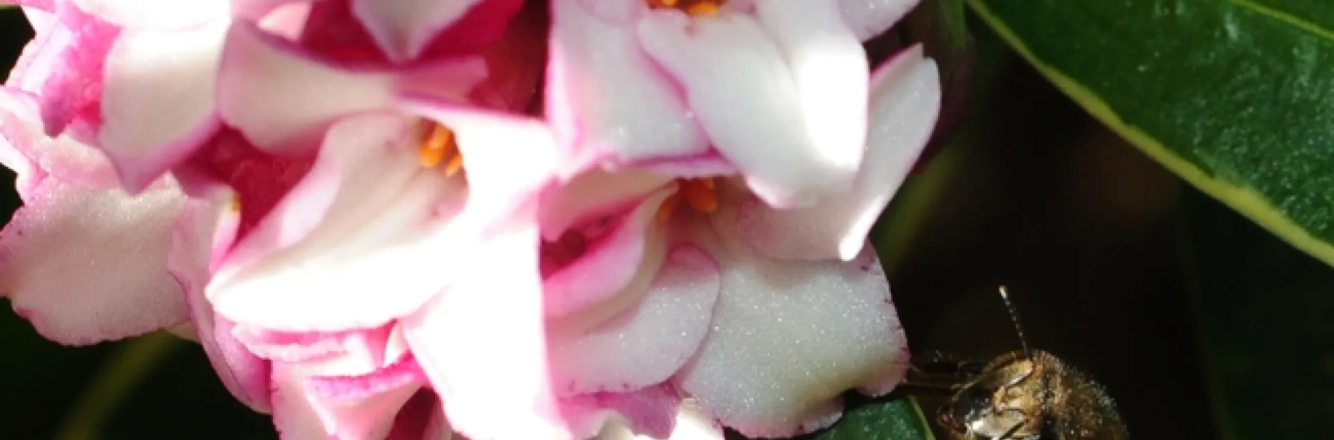 The winter daphne, an evergreen, is now blooming in the Ruth Risdon Storer Garden on Garrod Drive, UC Davis Arboretum.