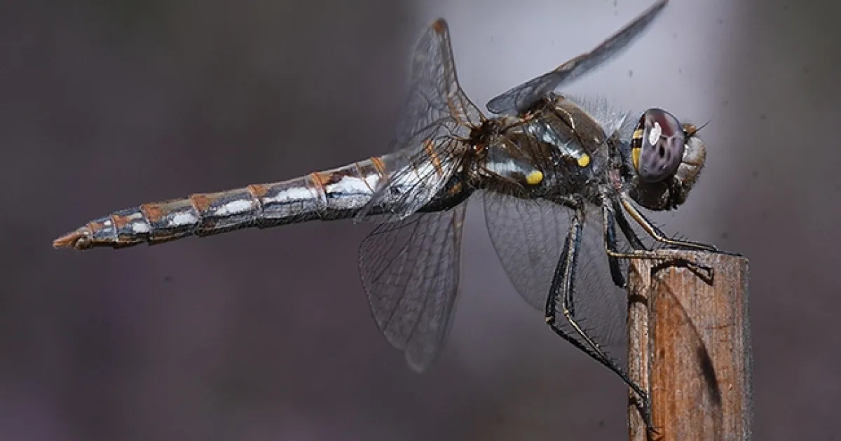 In one view below, you can see the “bi-colored” Pterostigma on the wing tip and the two black spots on the top of the tip of the abdomen," noted Kareofelas. "This is unique to this species."
