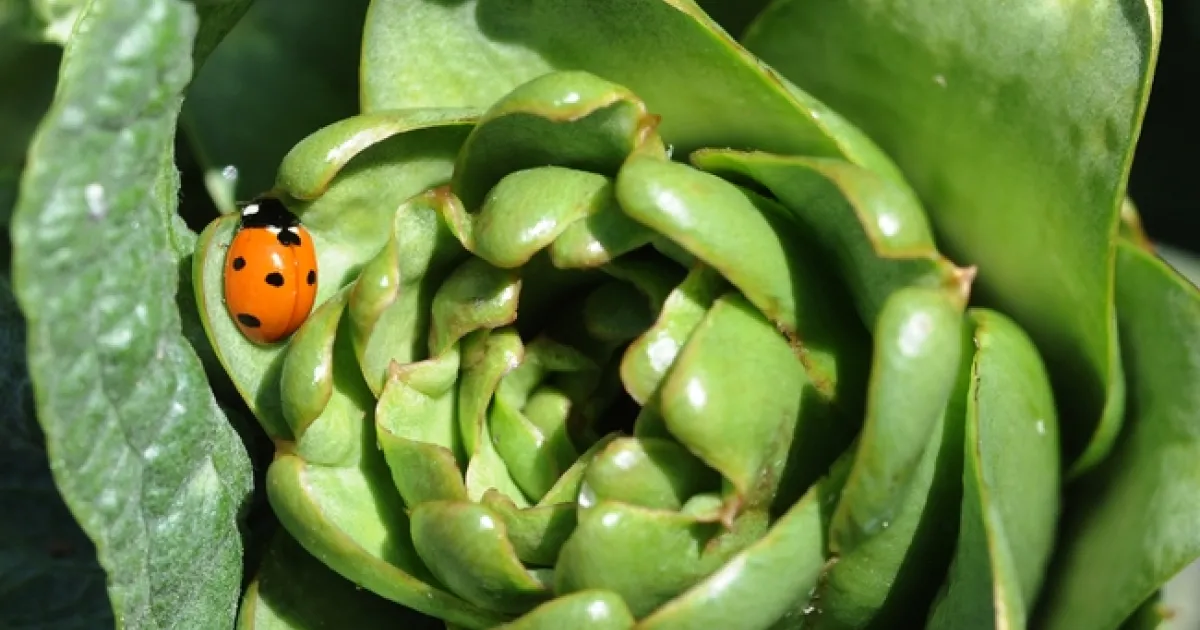 Last weekend we spotted one tucked in the heart of an artichoke, another climbing a nectarine tree, and still another perched on an artichoke leaf.