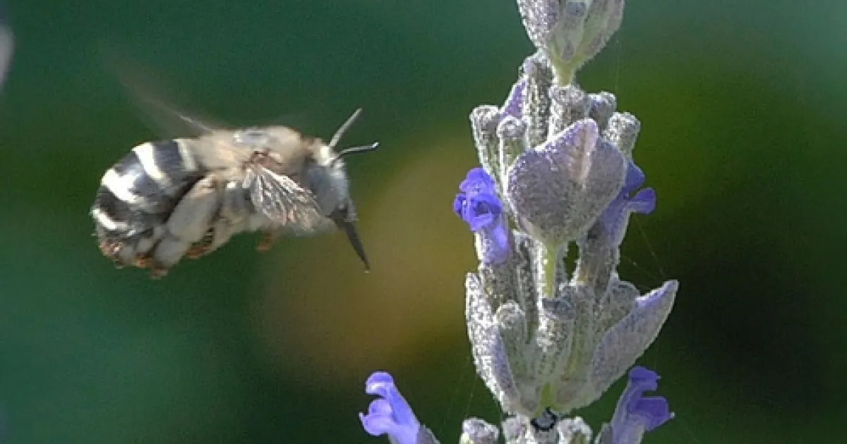 TINY Anthophora urbana nectaring lavender. (Photo by Kathy Keatley Garvey)