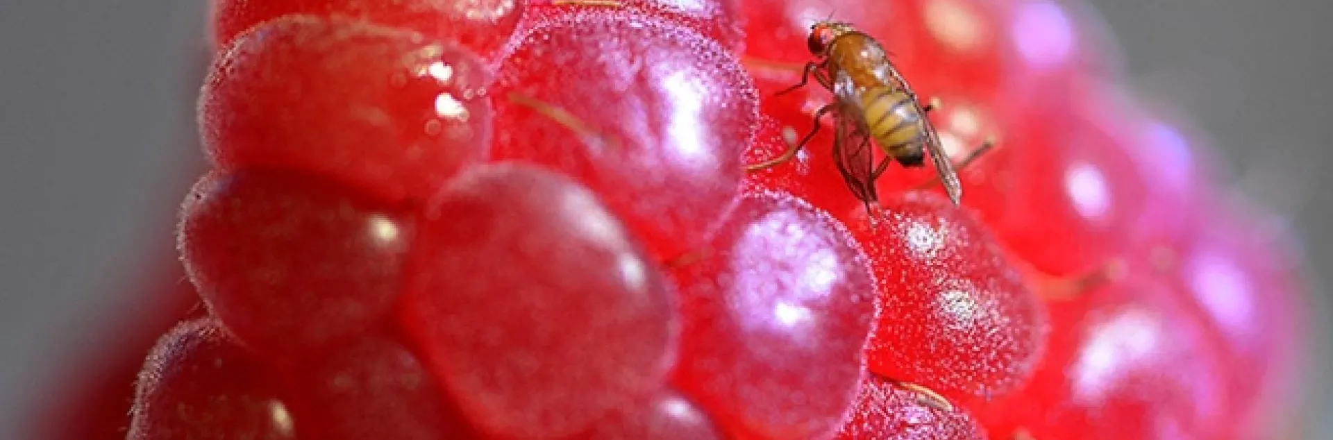 The spotted-wing drosophila (SWD), Drosophila suzukii, is an agricultural pest that is super tiny.