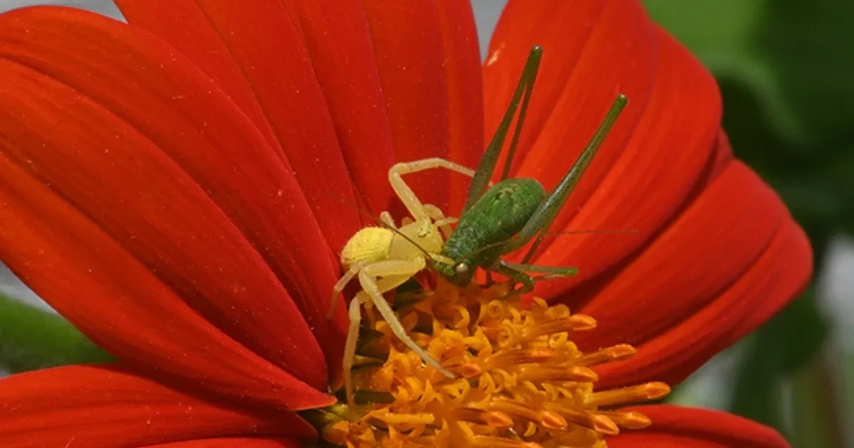 Well, in this case the crab spider did (survive to live another day) and the katydid didn't.