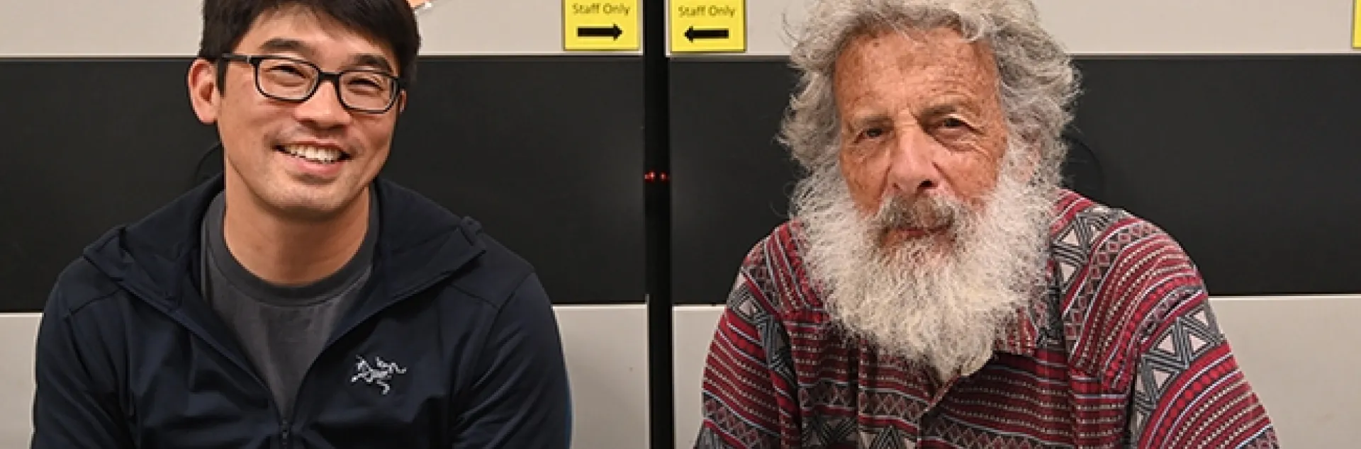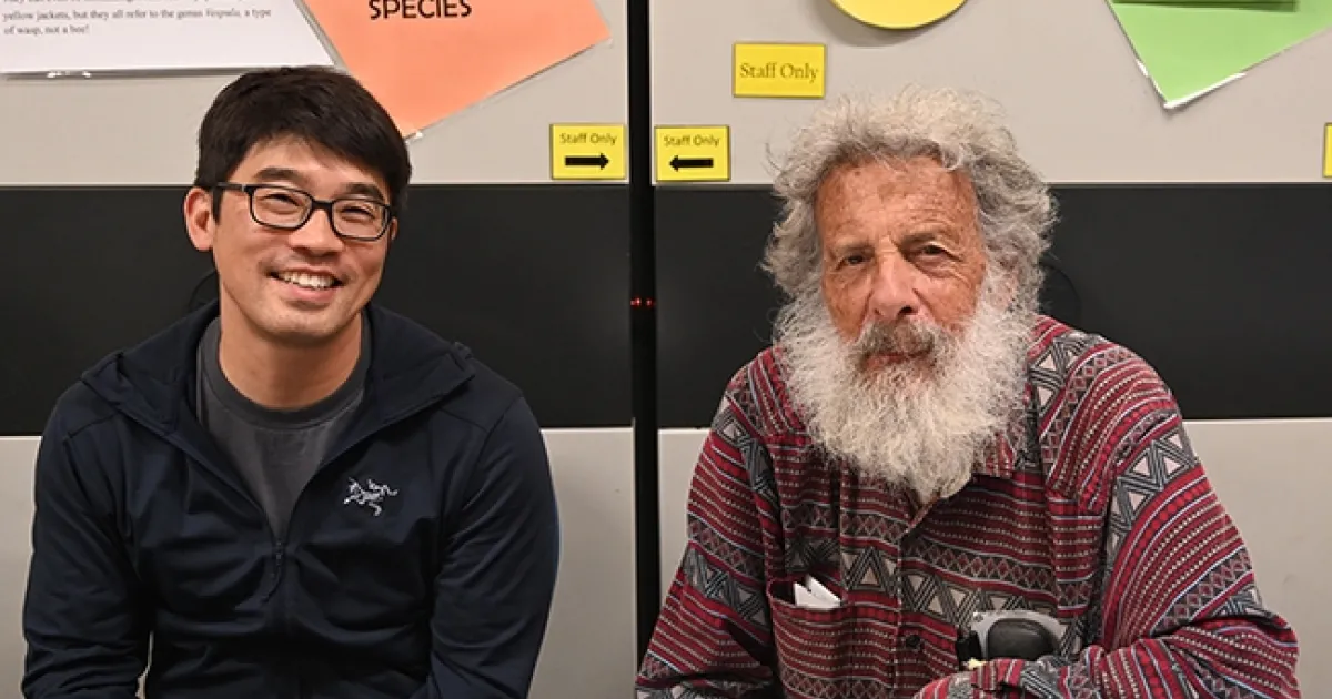 UC Davis distinguished professor emeritus Art Shapiro (right) of the Department of Evolution and Ecology and Louie Yang, professor, Department of Entomology and Nematology at the Bohart Museum of Entomology's recent open house on monarchs. (PHoto by Kathy Keatley Garvey)