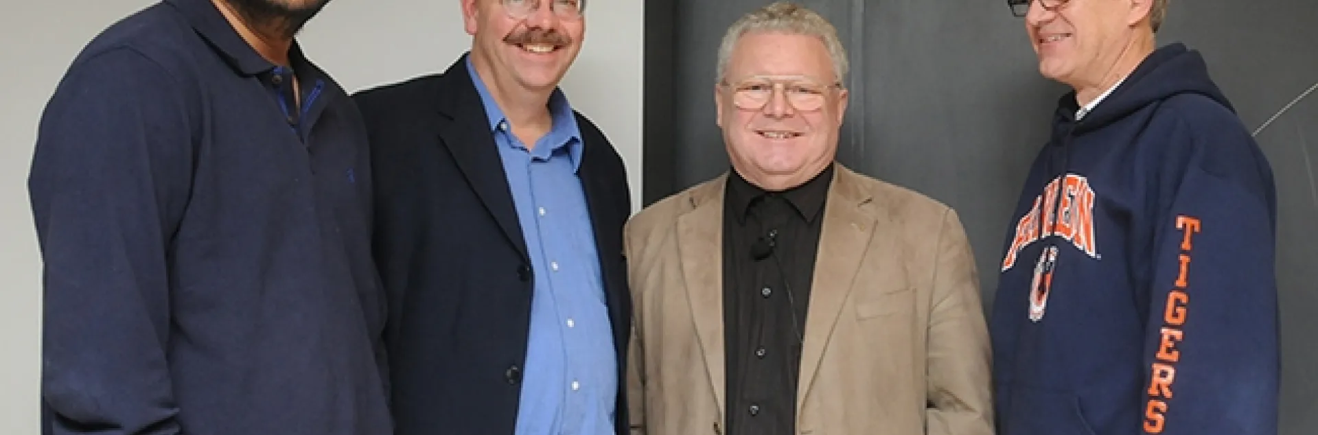 Renowned organic chemist Wittko Francke met with UC Davis researchers following his Dec. 8, 2010 presentation. From left are chemical ecologist Zain Syed of the Walter Leal lab; chemical ecologist and forest entomologist Steve Seybold (1959-2019) of the USDA Forest Service, Pacific Southwest Research Station, and the UC Davis Department of Entomology and Nematology; and UC Davis chemical ecologist Walter Leal. (Photo by Kathy Keatley Garvey)