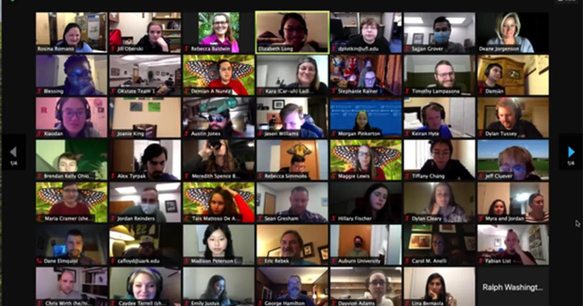 “This  year's format was significantly different from the past since it was held virtually,” said Joe Rominiecki, manager of communications for the Entomological Society of America (ESA). “A  preliminary round was held in early November online via WikiQuiz, and then the finals, with 14 teams total, took place live, broadcast via Zoom, on Monday night, Nov. 16. But rather than a head-to-head competition as in the past, all 14 teams competed at once, answering the same questions--four rounds of 10 questions, plus a tiebreaker question.”