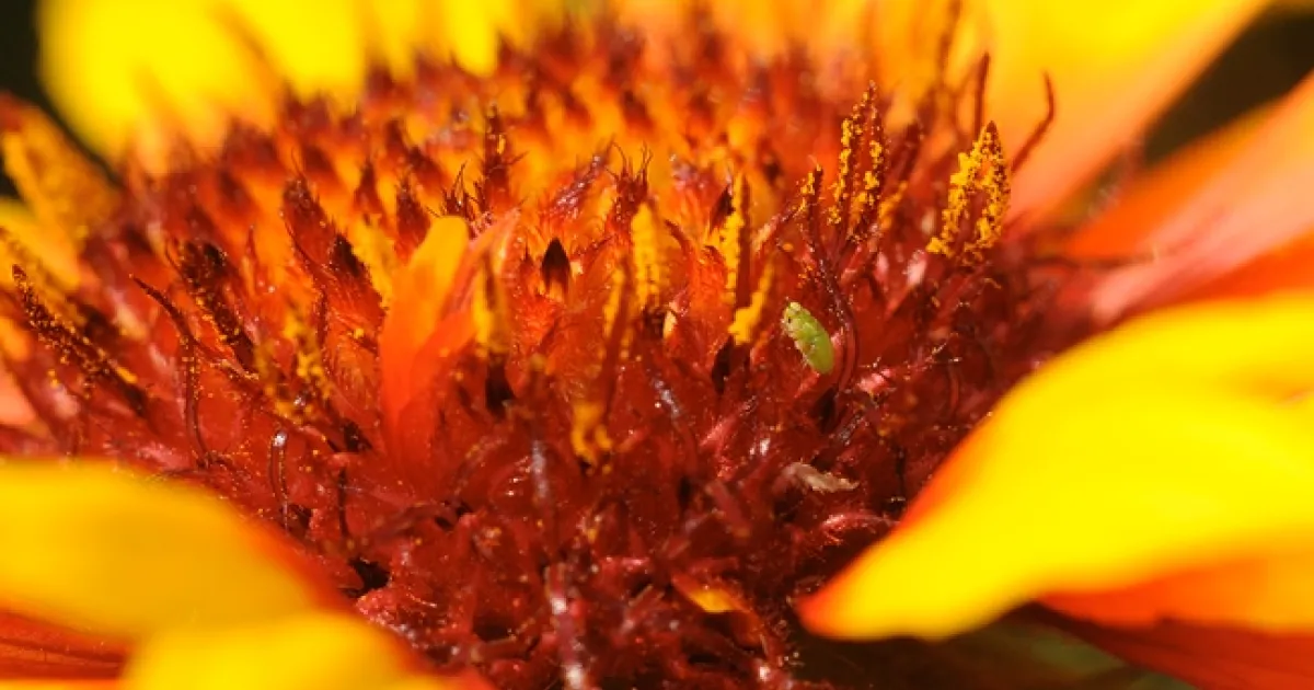 Green aphid on Gaillardia. (Photo by Kathy Keatley Garvey)