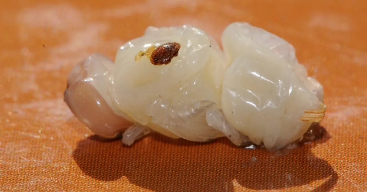 That would be the varroa mite, Varroa destructor, an eight-legged external parasite that attacks and feeds on honey bees. Those mites can spread viruses and decimate a healthy colony.