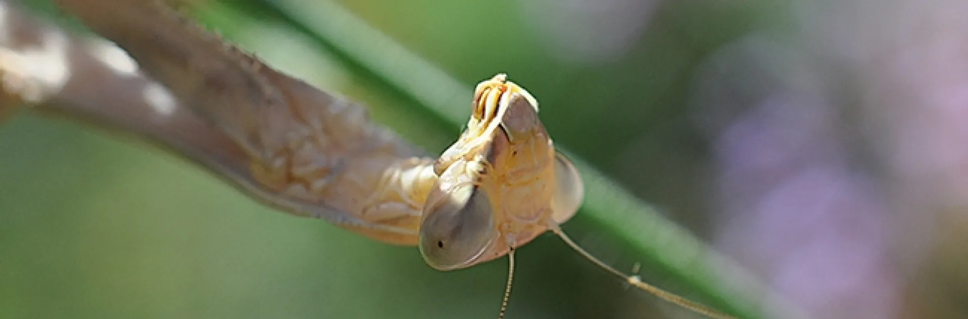 The mantis, a Stagmomantis limbata (as identified by praying mantis expert Lohit Garikipati of UC Davis) remains persistent, even as the temperature gauge spikes and the insects vanish.