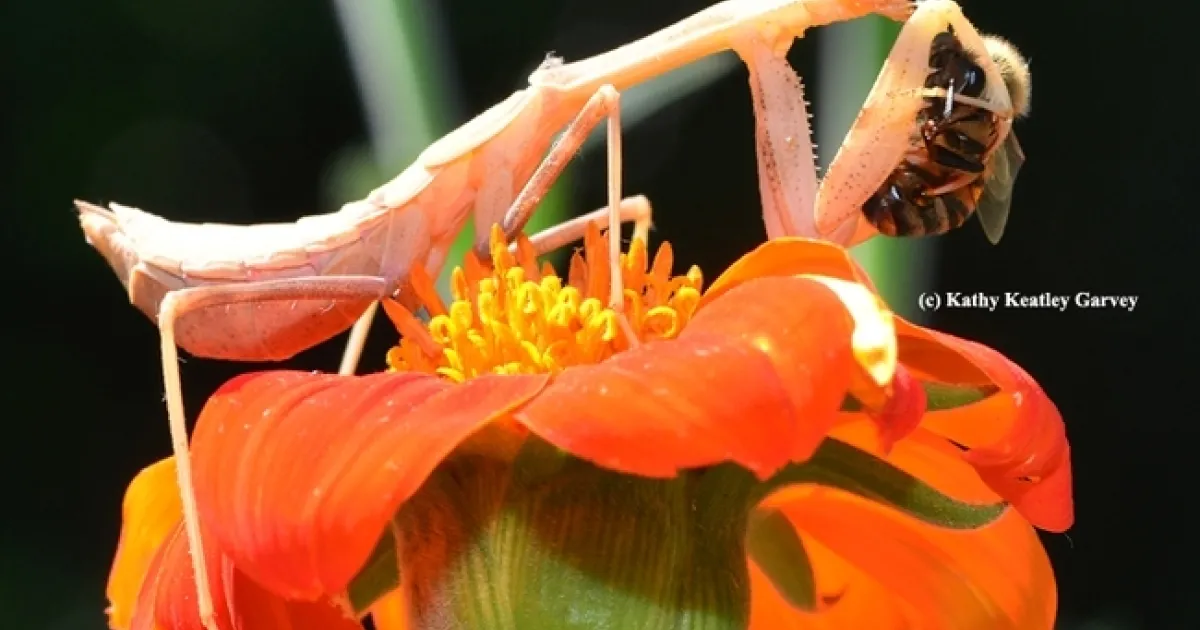 Last summer as a praying mantis "prayed" for dinner in our bee garden, we were thankful we were not a bee.