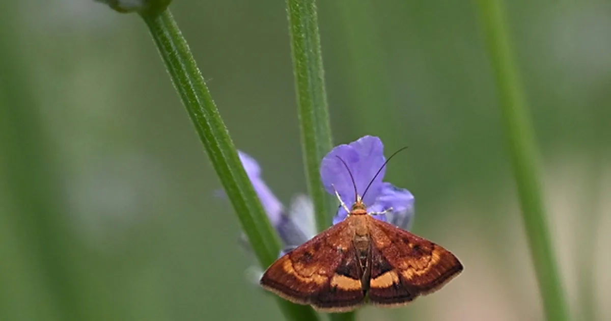"Although native, it occurs almost exclusively in gardens, where it breeds on any species of Mentha (mint)," Shapiro says. "It has multiple broods, most of the year. When we grew mint we had it up the yazoo in our garden. Pretty little thing!"