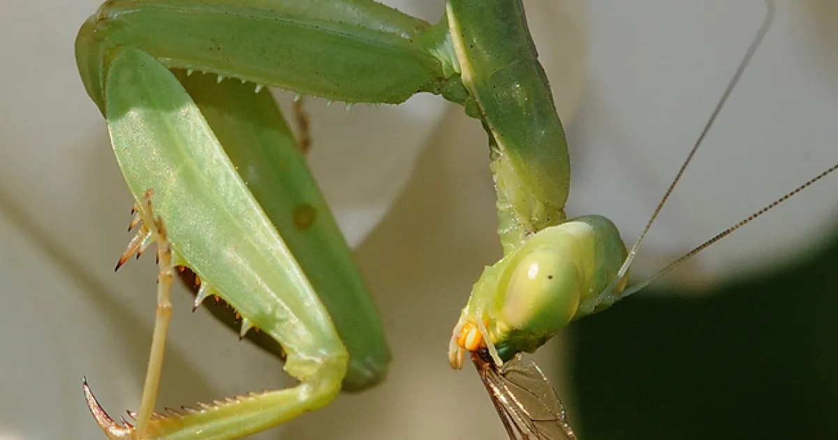 Praying mantis with remnants of a meal. (Photo by Kathy Keatley Garvey)