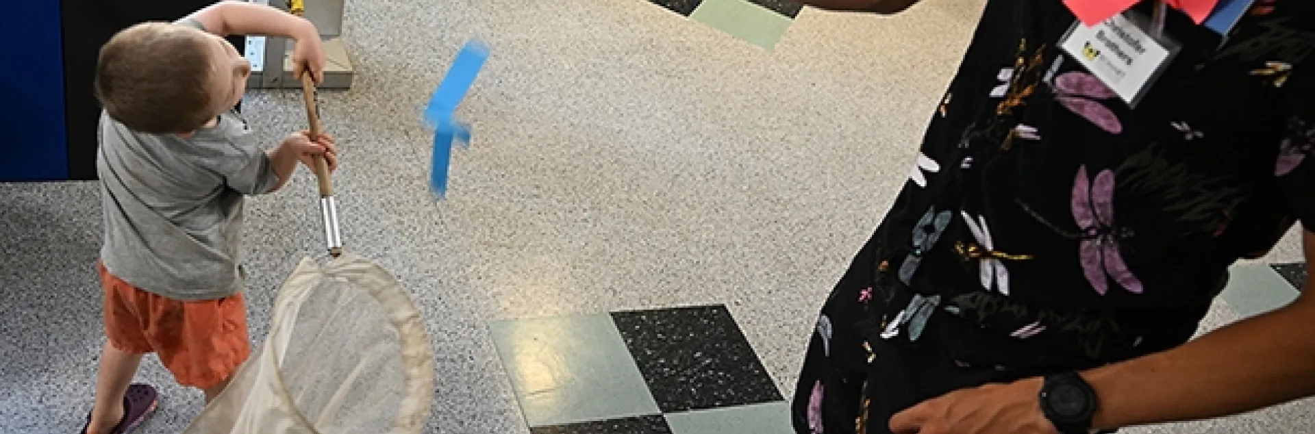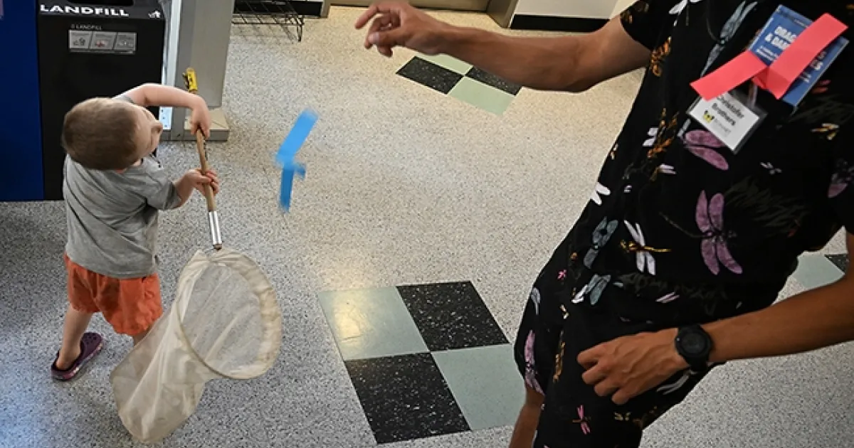 UC Davis doctoral candidate and dragonfly researcher Christofer Brothers showed youngsters how to net butterflies--paper butterflies, that is--at the Bohart Museum of Entomology open house on Sept. 28. The open house dealt with collecting, pinning identifying and labeling insects.