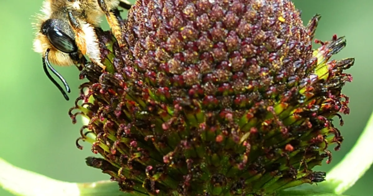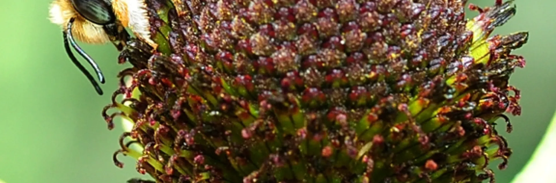Male leafcutter bee, Megachile fidelis, as identified by Robbin Thorp, on coneflower. (Photo by Kathy Keatley Garvey)