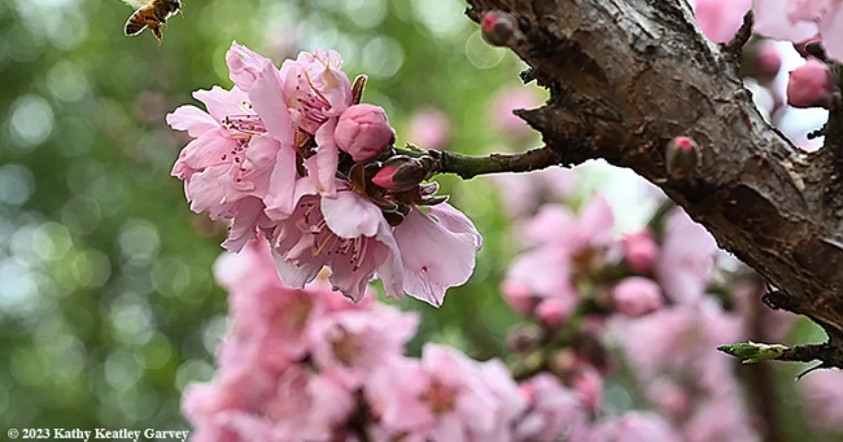 Meanwhile, we welcomed another sun break yesterday. So did the nectarine tree and the honey bees.