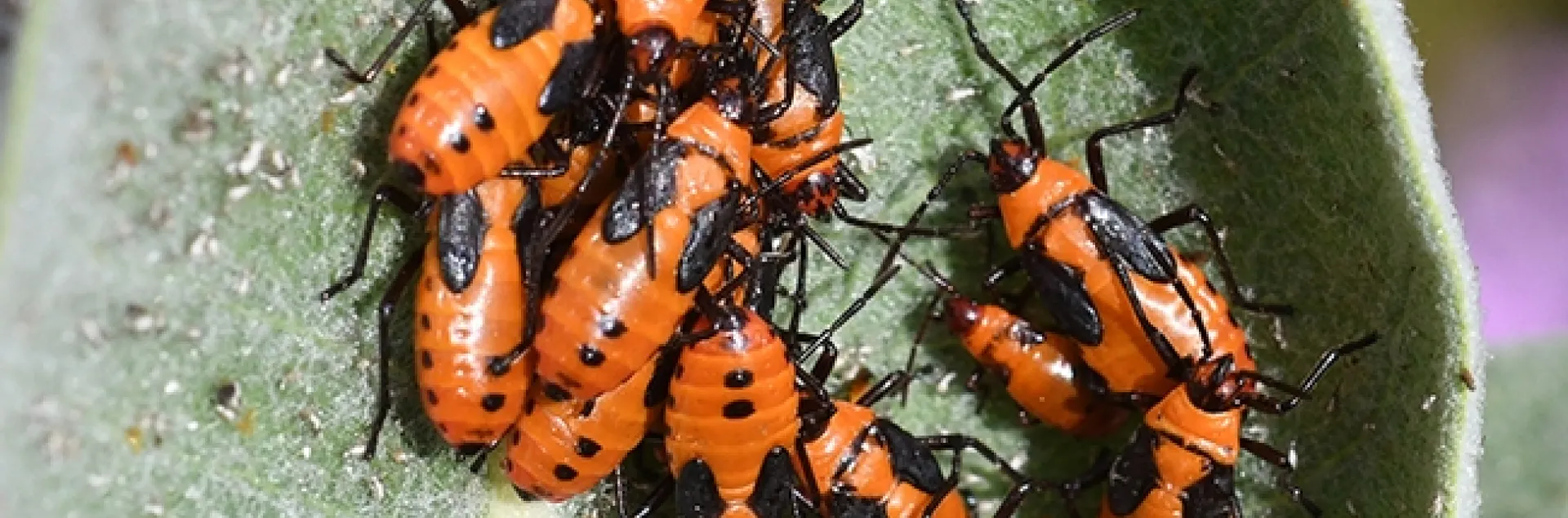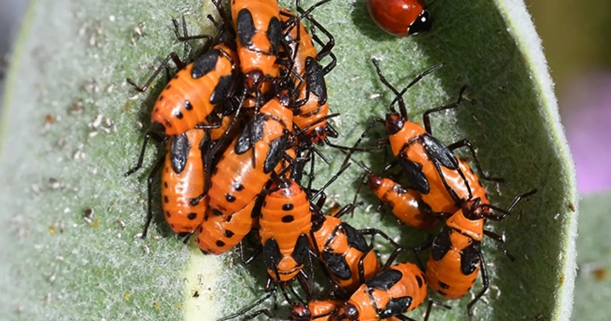 They're seed eaters, but as Hugh Dingle, emeritus professor of entomology, UC Davis Department of Entomology and Nematology says: "They are opportunistic and generalists." They not only eat seeds, but monarch eggs and larvae, as well as the oleander aphids that infest the milkweed.
