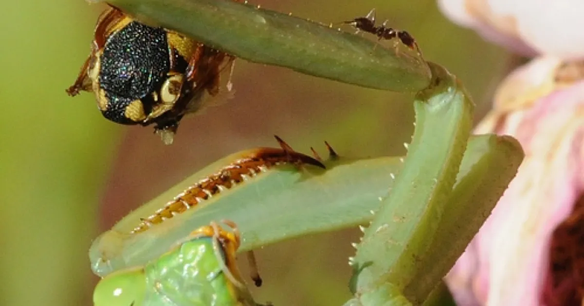 What it found was another predator, a praying mantis looking for breakfast.