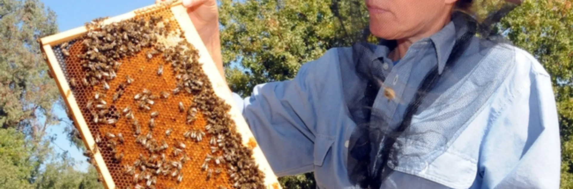 Of the approximately 80 photos submitted by faculty, staff, students, alumni and community members, 12 were selected for display on the first floor of the Coffee House, UC Davis Memorial Union. One depicts Cobey holding a frame of bees at the Harry H. Laidlaw Jr. Honey Bee Research Facility, UC Davis. Dawson said the display, which can be viewed until the end of the winter quarter, is part of this year's Campus Community Book Project focusing on "Half the Sky: Turning Oppression Into Opportunity for Women Worldwide," authored by the husband-wife team of Nicholas Kristof and Sheryl WuDunn.