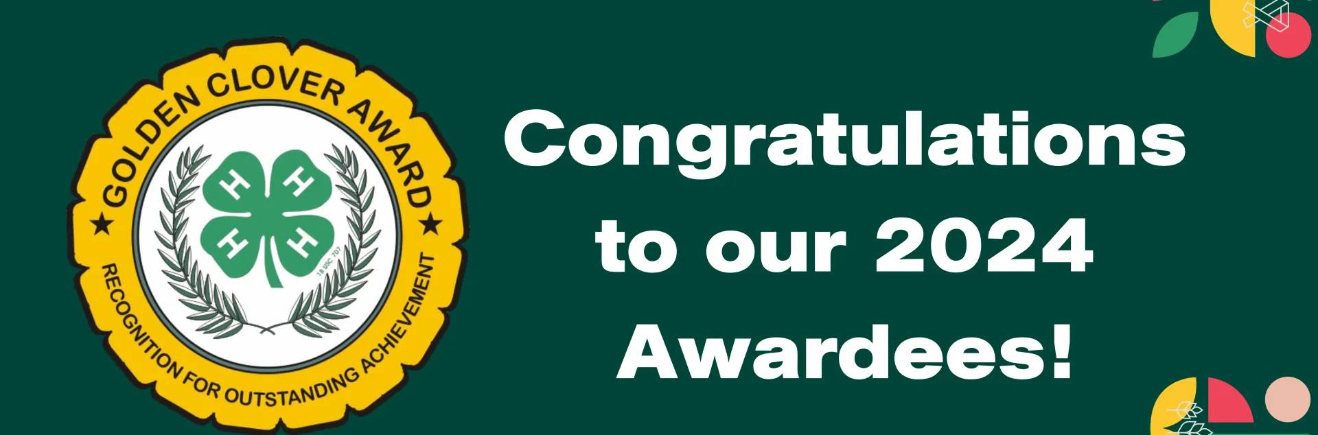 If you know of a Golden-Clover-worthy event, activity, 4-H story, or project, you can apply and/or nominate a person or group for a Golden Clover Award. Please visit the Golden Clover Awards page to learn about all the categories. Nominations are open until September 7, 2025.