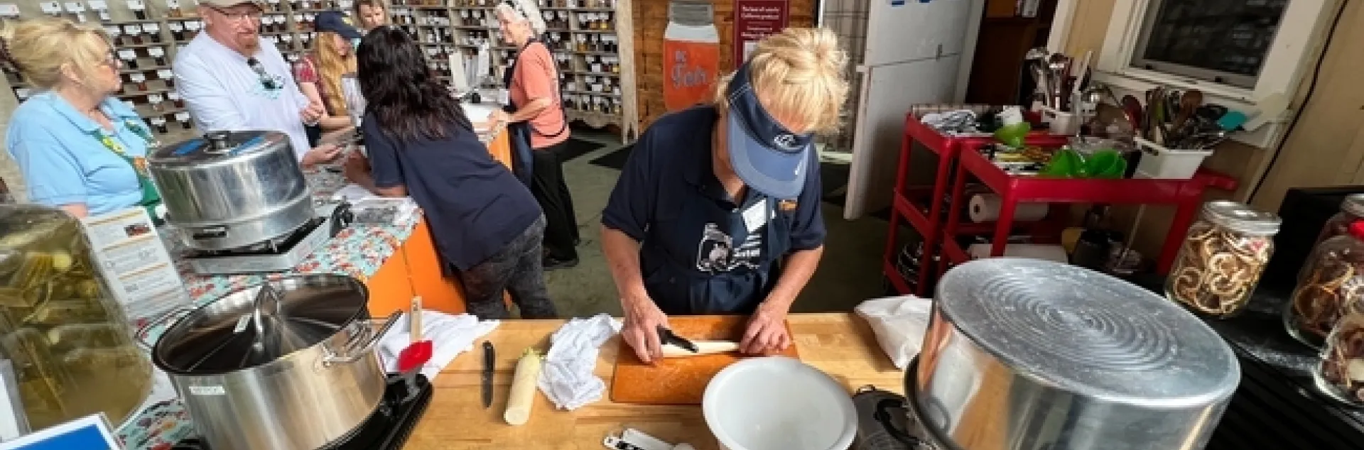Esto es lo que hubiera visto hacer a los maestros conservadores de alimentos, durante todo ese mes que se presentaron en la feria. Ellos pertenecen al Programa de Maestro Conservador de Alimentos un servicio comunitario de la División de Recursos Naturales de la Universidad de California, UC ANR que ofrece talleres gratuitos, gracias a la labor de más de 400 voluntarios que comparten sus conocimientos con la comunidad en 24 diferentes condados.