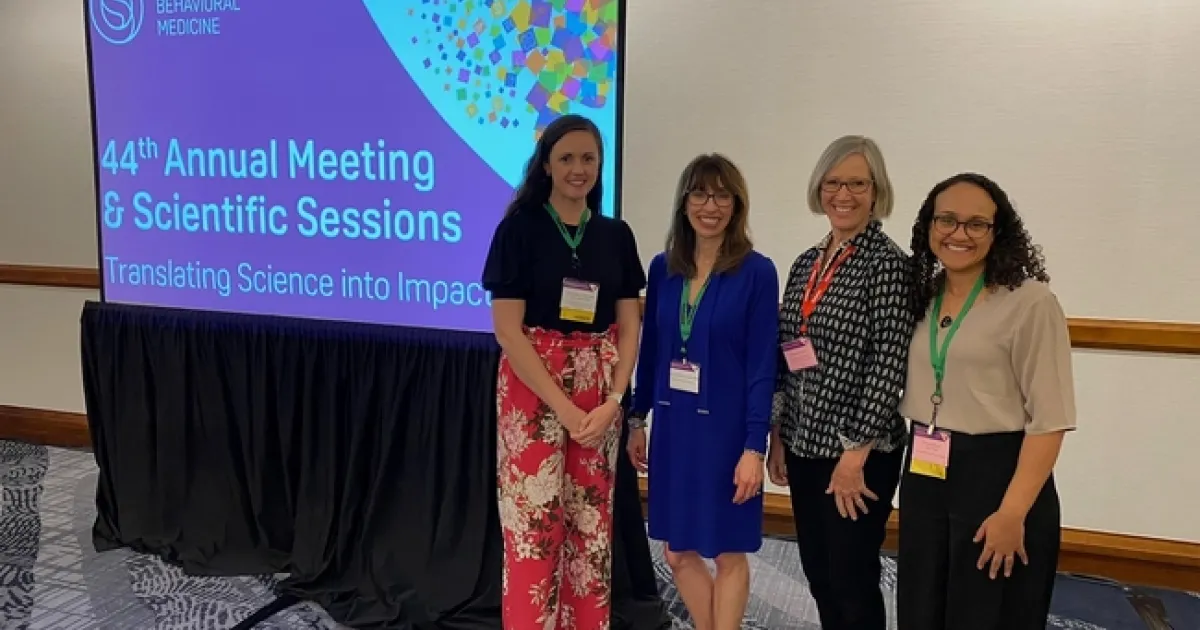 Suzanne Rauzon (segunda de izquierda a derecha) junto a los investigadores de salud comunitaria (de izquierda a derecha) Lexi MacMillan Uribe, Trina Robertson y Gabriela Buccini, durante la Reunión Anual de la Sociedad de Medicina Conductual que se llevó a cabo en abril del 2023. Fotografía cortesía de Suzanne Rauzon
