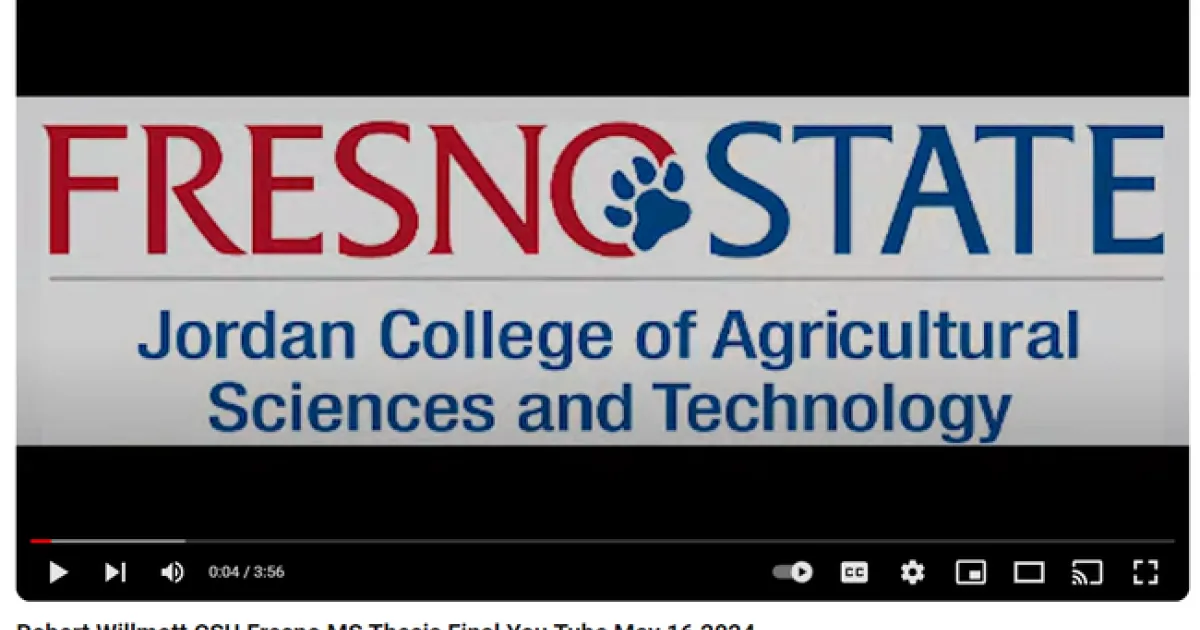 Robert Willmott not only recently wrapped up his MS thesis research at Fresno State, but he also works full-time as the Farm Manager for his college's student ag farm, is married, and has two small children as well! A full plate, to say the least. In addition to all this, he recently told his story at Fresno State in a 3-minute video that is now posted at You Tube https://www.youtube.com/watch?v=Uo6xZh5sGdA