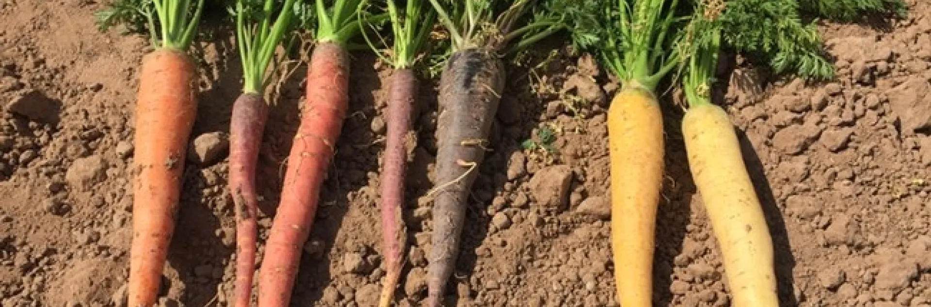 While the orange carrot is a standard in carrot varieties, it is actually a more recent carrotvarietal. The purple and yellow carrots were the original carrot colors and these novel colored carrots (ie purple, yellow, and red) are becoming increasingly popular among consumers and chefs again. Each color has a different health benefit and nutritional value. Dr. Simon's research includes the development of novel colored carrot strains with increased nutritional values, such as carotenoids and anthocyanins.