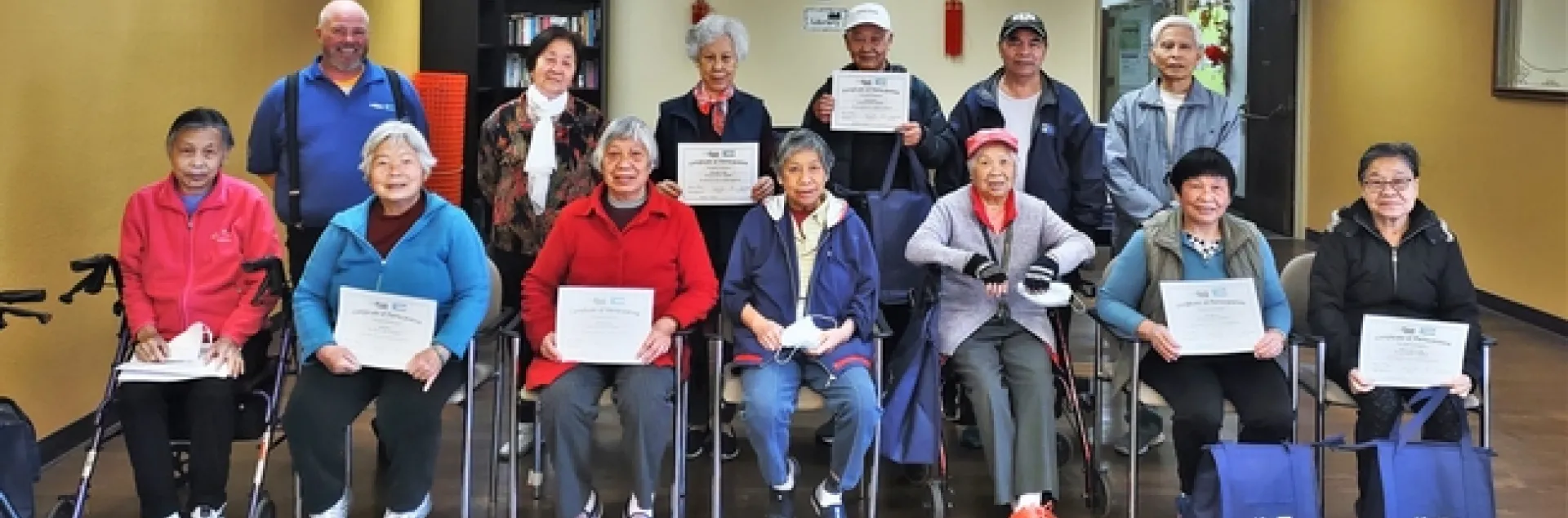 Naturally, Fairbee went on to describe how proud he feels about his work with older adults in the Bay Area. In mid-April, Fairbee celebrated his recent class of graduates who are all over the age of 60. Students were highly engaged in the lessons about healthy living and Fairbee had 23 students complete the course.