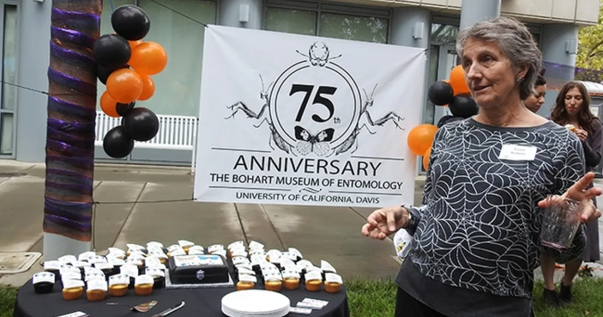 Rain dampened the Crocker Lane event but not the enthusiasm as the crowd toasted the work of the Bohart Museum and its director Lynn Kimsey, UC Davis distinguished professor of entomology. She has administered the Bohart Museum since 1990.
