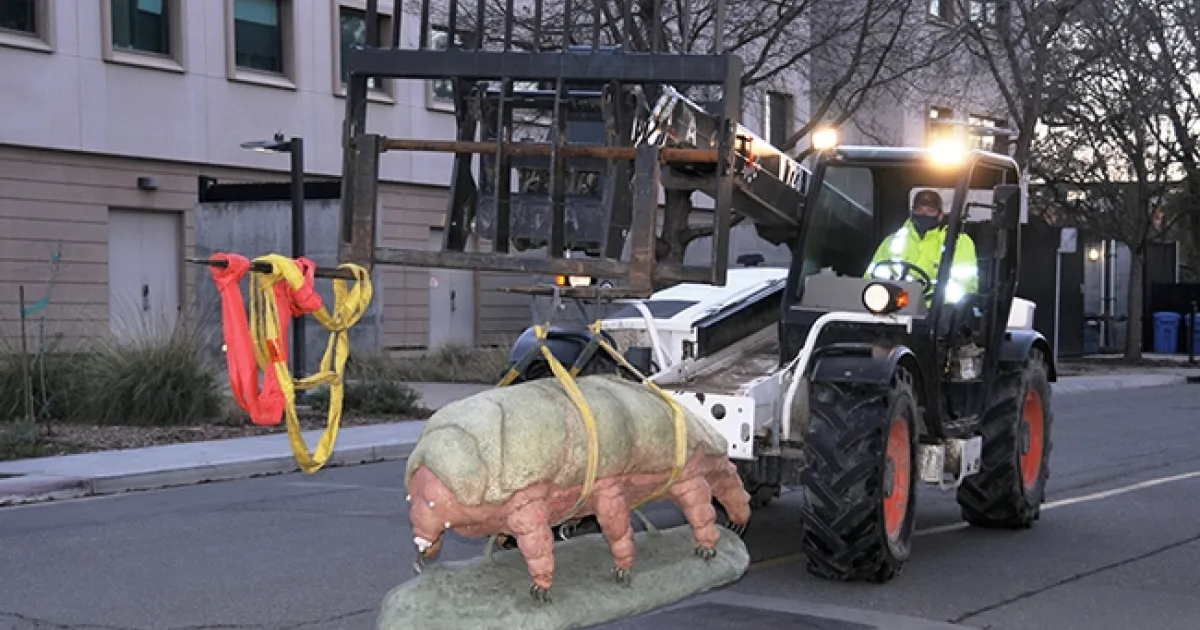 The huge sculpture, located in front of the Academic Surge Building on Crocker Lane, anchors the entrance to the Bohart Museum, which houses one of the world's largest tardigrade collections.