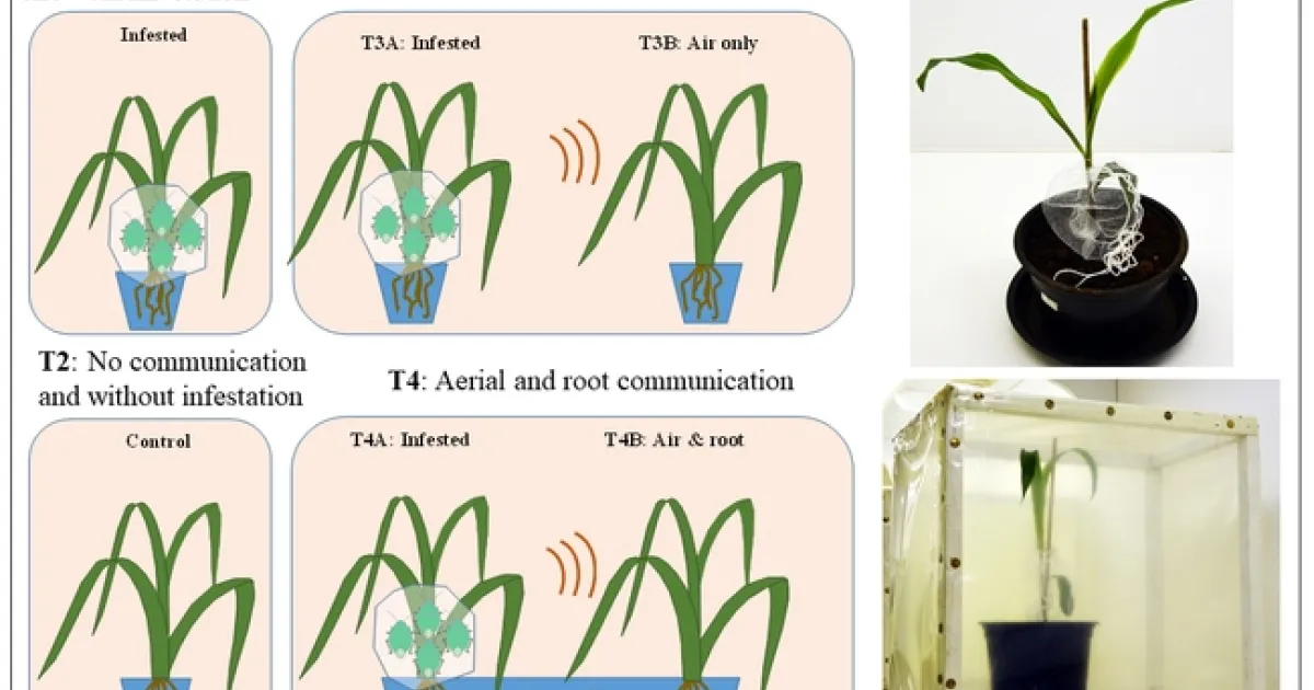 For the research project, Nansen and his team decided to conduct “a very simple experiment with corn plants and stink bugs.” They planted corn plants in separate pots or two in one pot. They subjected some plants to herbivory by stink bugs, while other plants served as control plants.