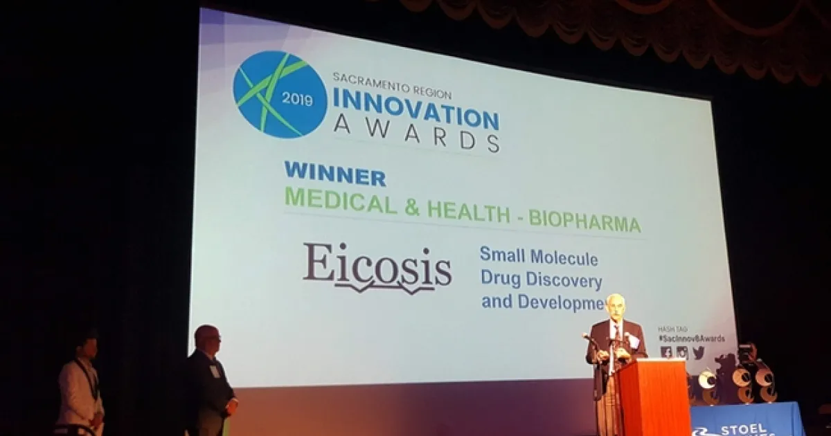 EicOsis won the award in the medical health/biopharmaceutical category of the annual Sacramento Region Innovation Awards Program. The program “recognizes the area's vibrant innovation community—from emerging to established companies—and their breakthrough creations,” according to sponsors Stoel Rives LLP, Moss Adams LLP and the Sacramento Business Journal.