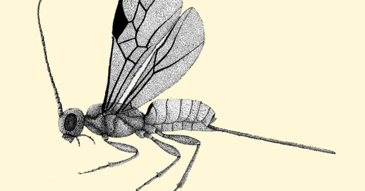 Fig. 1. Drawing by Mary Foley of Coeloides dendroctoni, a braconid parasite of larvae of the mountain pine beetle. (De Leon 1934).
