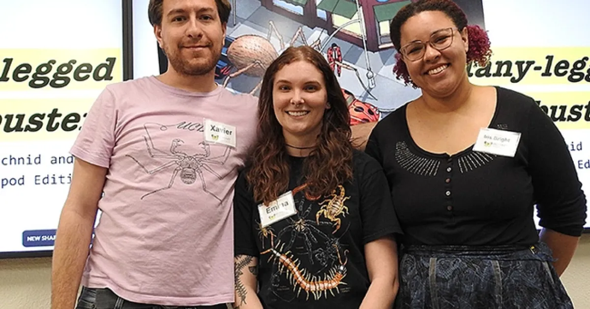 So said doctoral candidates Emma Jochim and Xavier Zahnle of the Jason Bond arachnology lab when they dispelled myths in their 30-minute, family friendly session about arachnids at the Bohart Museum of Entomology open house, "Many Legged-Wonders," on Saturday, March 18. First-year doctoral student Iris Quayle of the Bond lab moderated the session. Their major professor, Jason Bond, is the Evert and Marion Schlinger Endowed Chair in Insect Systematics, UC Davis Department of Entomology and Nematology, and associate dean, College of Agricultural and Environmental Sciences.