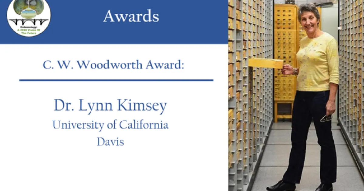UC Davis faculty and UC Cooperative Extension specialists fared well, with Lynn Kimsey, director of the Bohart Museum of Entomology and professor of entomology, UC Davis Department of Entomology and Nematology, receiving the highest award, the C. W. Woodworth Award. (See news story)