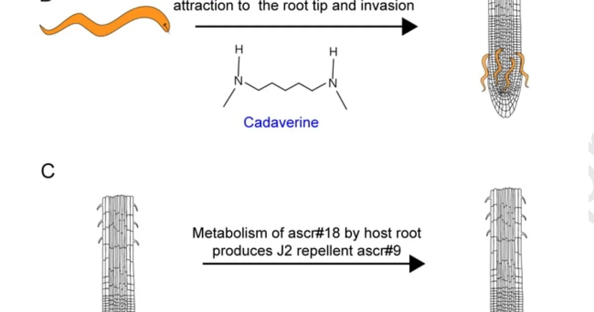 For eight decades, scientists have researched the attraction of plant-parasitic nematodes to the host root, ever since the pioneering Maurice Blood Linford (1901-1960) of the University of Illinois, Urbana, Ill., observed in 1939 that the larvae of root-knot nematodes congregate in the cell elongation region behind the root cap.