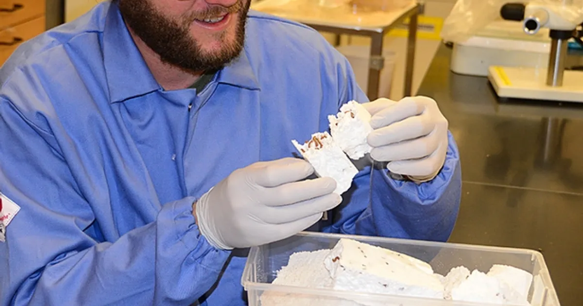 Meanwhile, his 100,000 mealworms in the Briggs Hall lab of his major professor Christian Nansen, are munching away in a project that Fowles hopes will make a difference in breaking down Styrofoam--especially a problem in the nation's landfills--and offer sustainable environmental solutions.