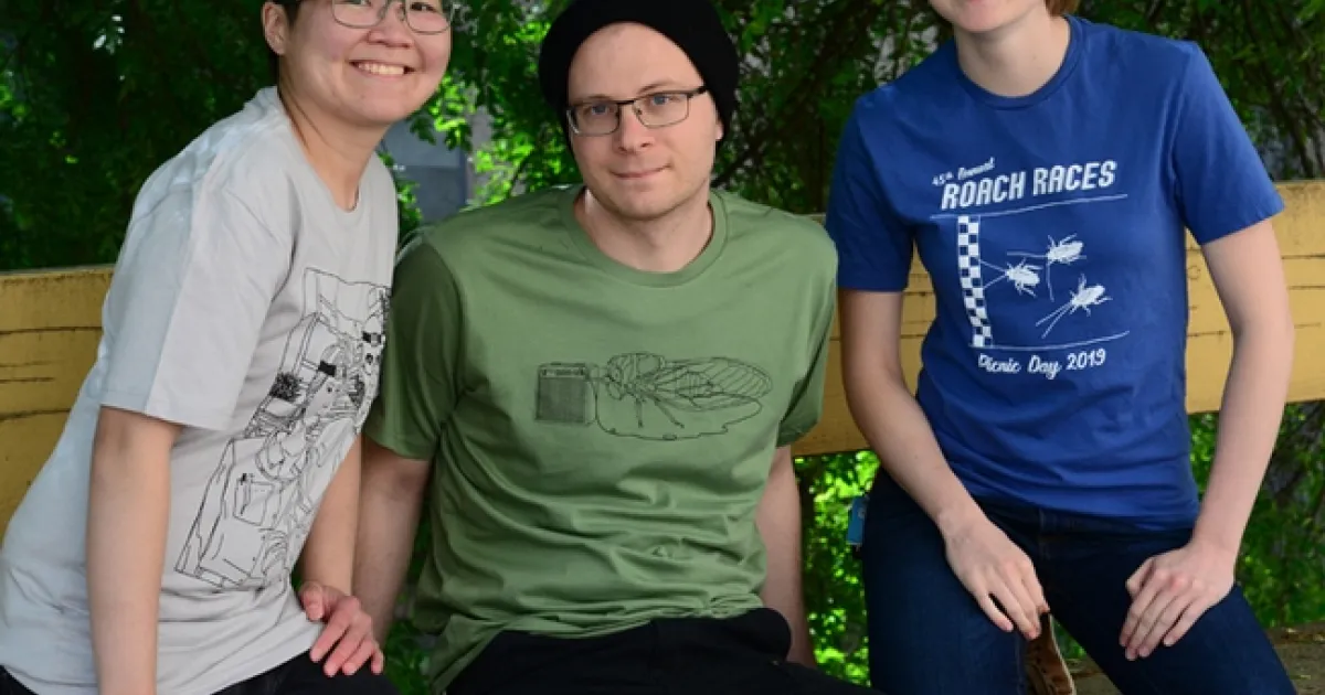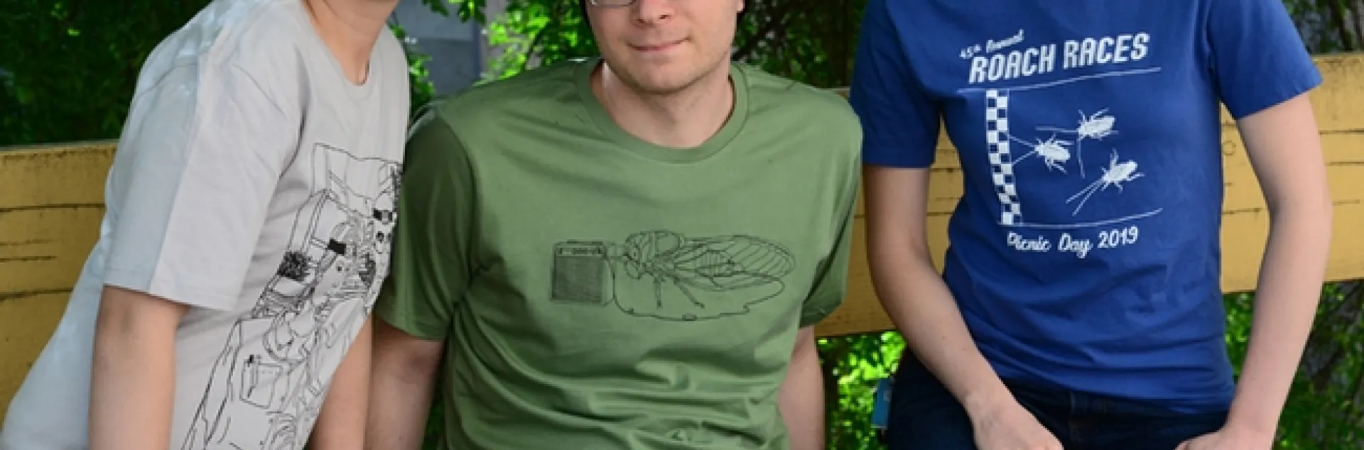 • T-Shirt Sales: Visitors can take their pick or picks among insect-themed t-shirts (popular t-shirts include beetles and honey bees). Newly printed t-shirts feature the roach races, an American Gothic of entomologists, and a cicada plugged into an amp. Selection and prices are online at https://mkt.com/UCDavisEntGrad/