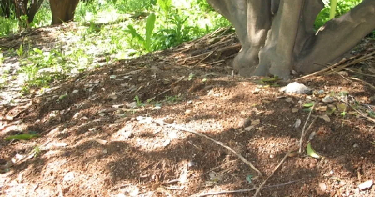 Mulch under citrus trees helps maintain soil moisture, reduces soil temperatures, and can effectively manage weed growth.
