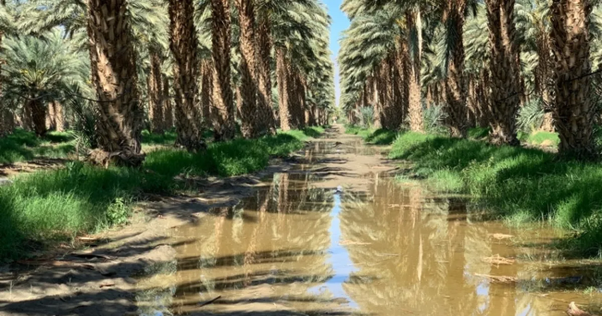 Historically, date palms are grown along riverbeds or in areas with groundwater because they require an abundance of water to produce a good crop. Unlike lettuce or table grapes, date palms are deceptive in that they do not immediately wilt if underwatered. Eventually, however, the lack of water hurts yields and fruit quality.