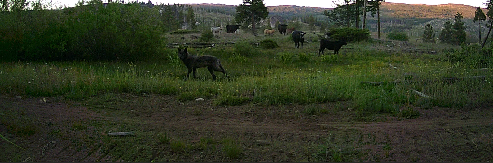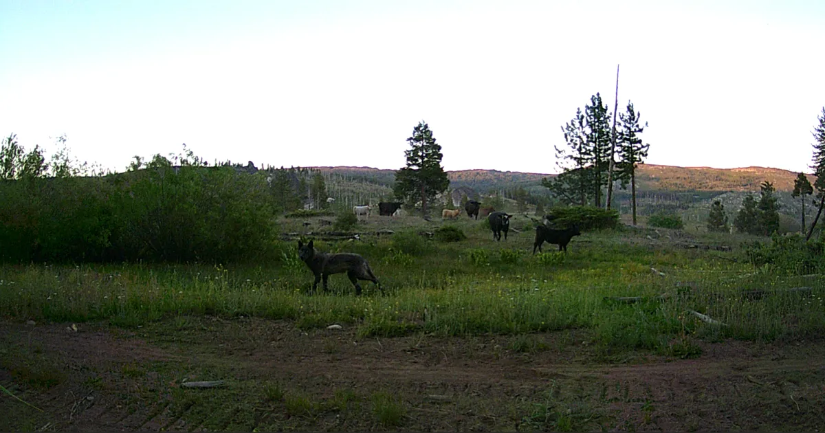 But one evening reviewing trail camera data, Saitone noticed a herd of cows and calves walking fast and running by a camera for about 30 minutes, followed by two wolves in the middle of the night. “They’d been chasing those cattle and we just caught it on camera,” Tate said. “That stress event just streamed by and, for me, was the first and most exciting finding of evidence wolves were negatively interacting with cattle.”