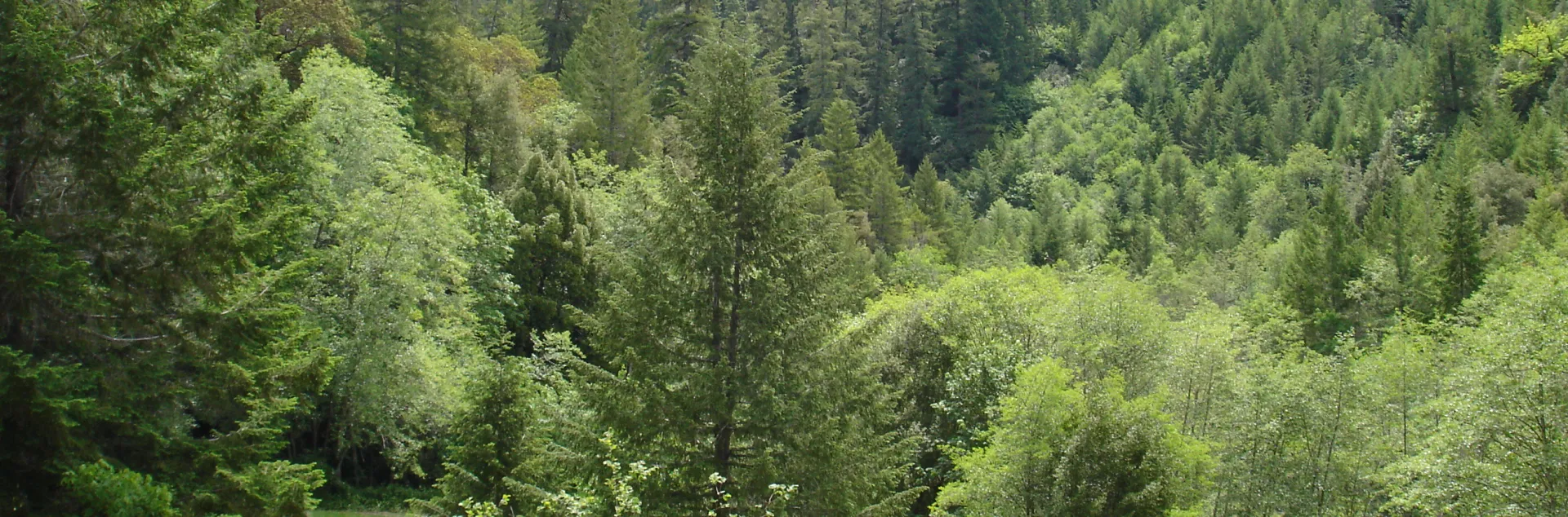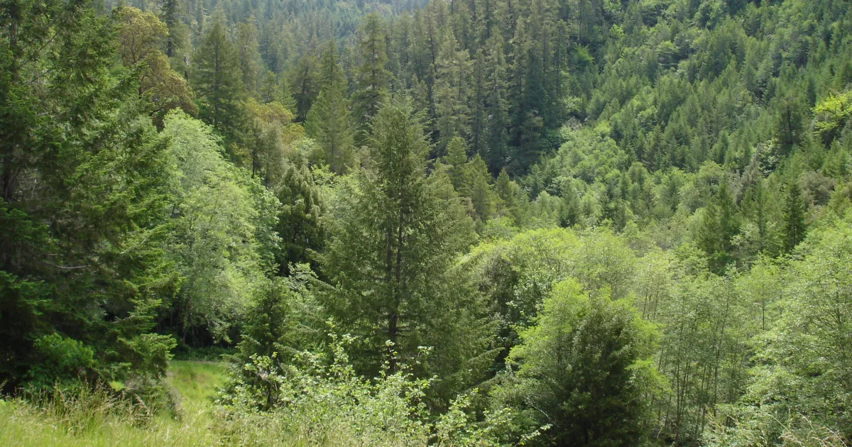 The property had been logged heavily, starting in the 1920s to the early 1980s. There’s been quite a lot of heavy work done here over the years, and what has grown back is a mixed conifer and hardwood forest that is not representational of what was here before the logging. There is a lot of Douglas fir, some smaller cedars, a whole lot of tan oak, California bay laurel, and some really intense huckleberry thickets, because when the previous owners clear cut they didn't replant any trees.