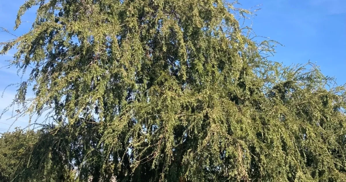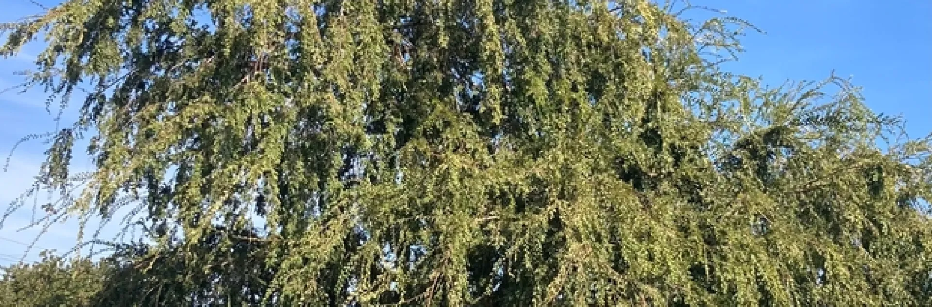 If dead branches are large or higher than 15 feet it's best to hire a certified arborist to do the work. Many large landscape trees were blown over during last year's violent windstorms. Root systems of surviving trees may have been compromised or broken from the soil from high winds. Changes in the angle of the tree trunk as it begins to tip may not be obvious.