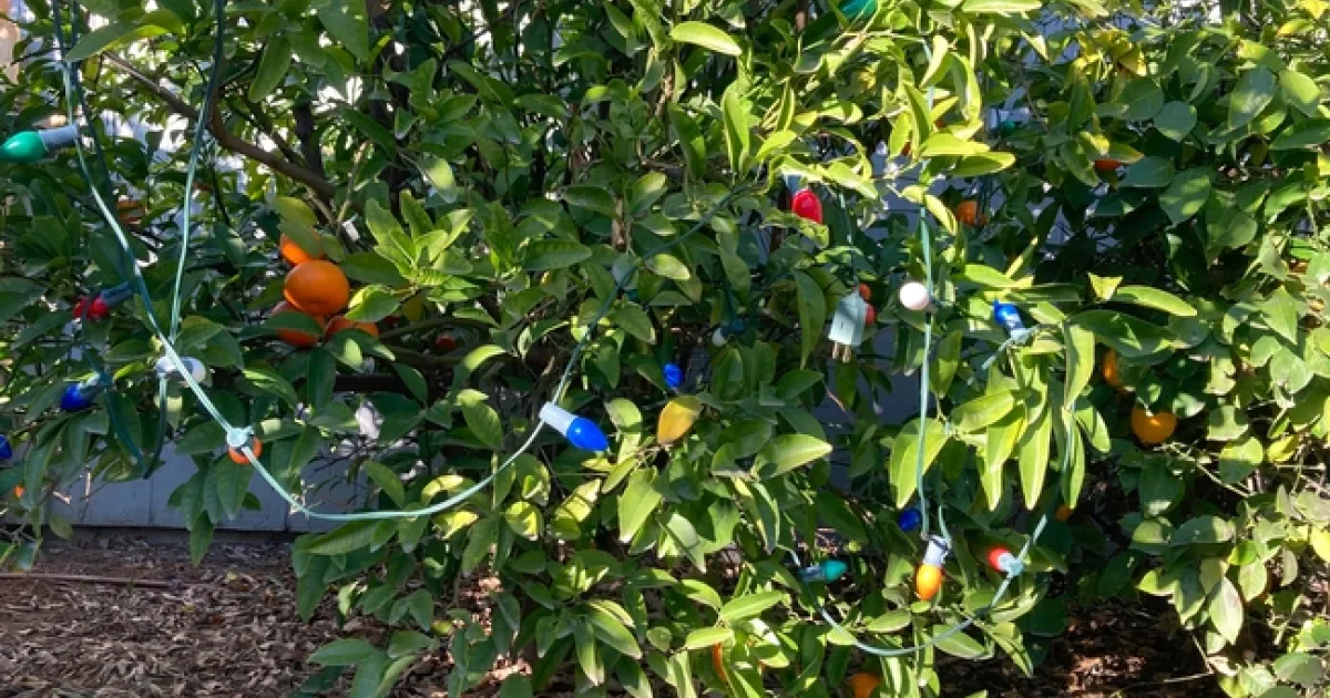You can protect citrus from frost by stringing old-fashioned Christmas lights (non LED) in the trees and leaving them on overnight. (Photo: Jeannette Warnert)