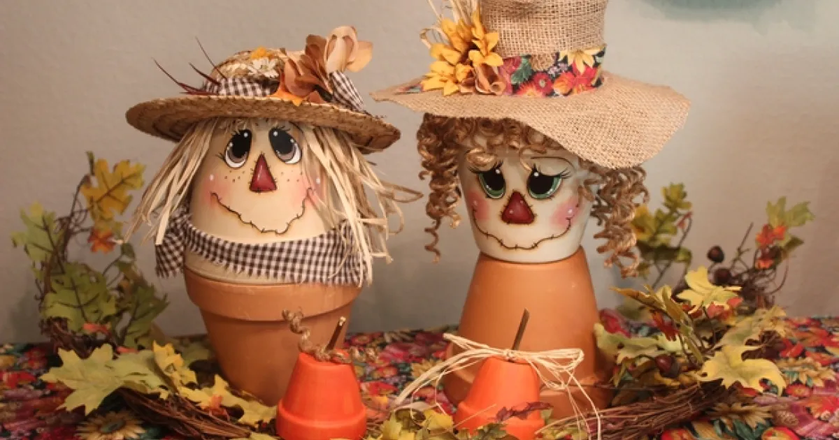 These make the perfect centerpieces for the fall table along with pumpkins and other decorations. If you paint them orange, turn them upside-down to make a pumpkin. Add a dowel or twig for a stem. Stack painted pots beneath the scarecrow face to represent his body. The scarecrow pot can be set onto a post and placed into the garden or he can greet your guests by the front door. They can be transformed into delightful decor for everyday and seasonal use with a bit of imagination. Look to the internet for some inspiration. Gather up your friends and get crafting together for some fall fun!