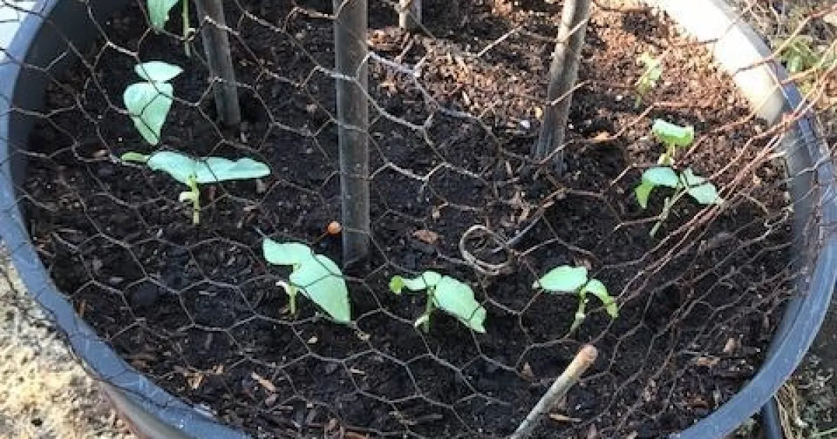 Sunset magazine is a reliable source of information and useful hints and hacks, consistently providing sound, reasoned advice. In the April 9, 2021 listing of Your Spring Garden Checklist, the following quote brought back the unsolved mystery of what happened to the snow peas: “Use plastic baskets from cherry tomatoes or strawberries to protect newly sprouted seedlings from birds. By the time the seedlings have grown tall enough to reach the tops of the baskets, they are no longer as tender as the birds prefer.”
